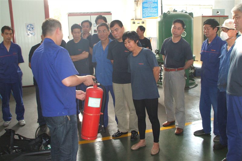 6月14日下午,山東三金公司安全環(huán)保處組織了一場"安全月消防演練"。此次演練的主要內(nèi)容是液氨泄露和火災(zāi)的應(yīng)急防范措施。通過講解和現(xiàn)場演示,車間員工掌握了防毒面罩、空氣呼吸器和干粉滅火器的使用方法。
